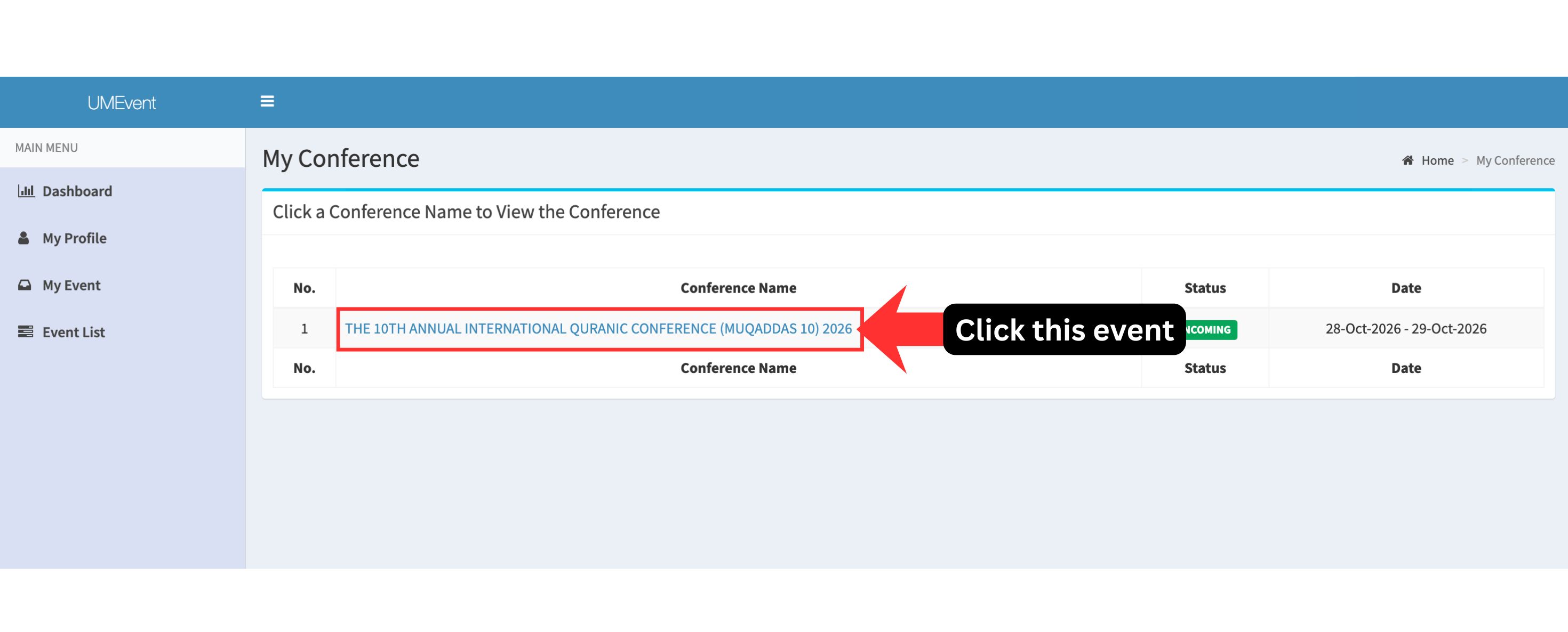 2. Click "My Event"
