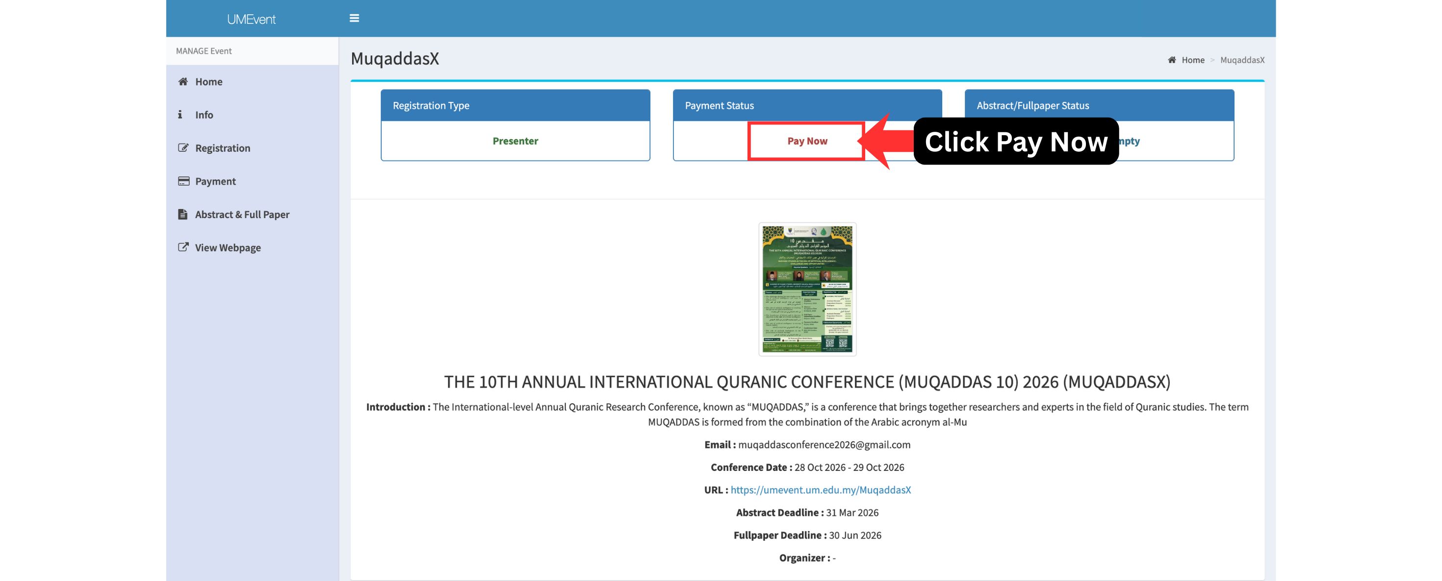 3. Click "THE 10TH ANNUAL INTERNATIONAL QURANIC CONFERENCE (MUQADDAS 10) 2026"