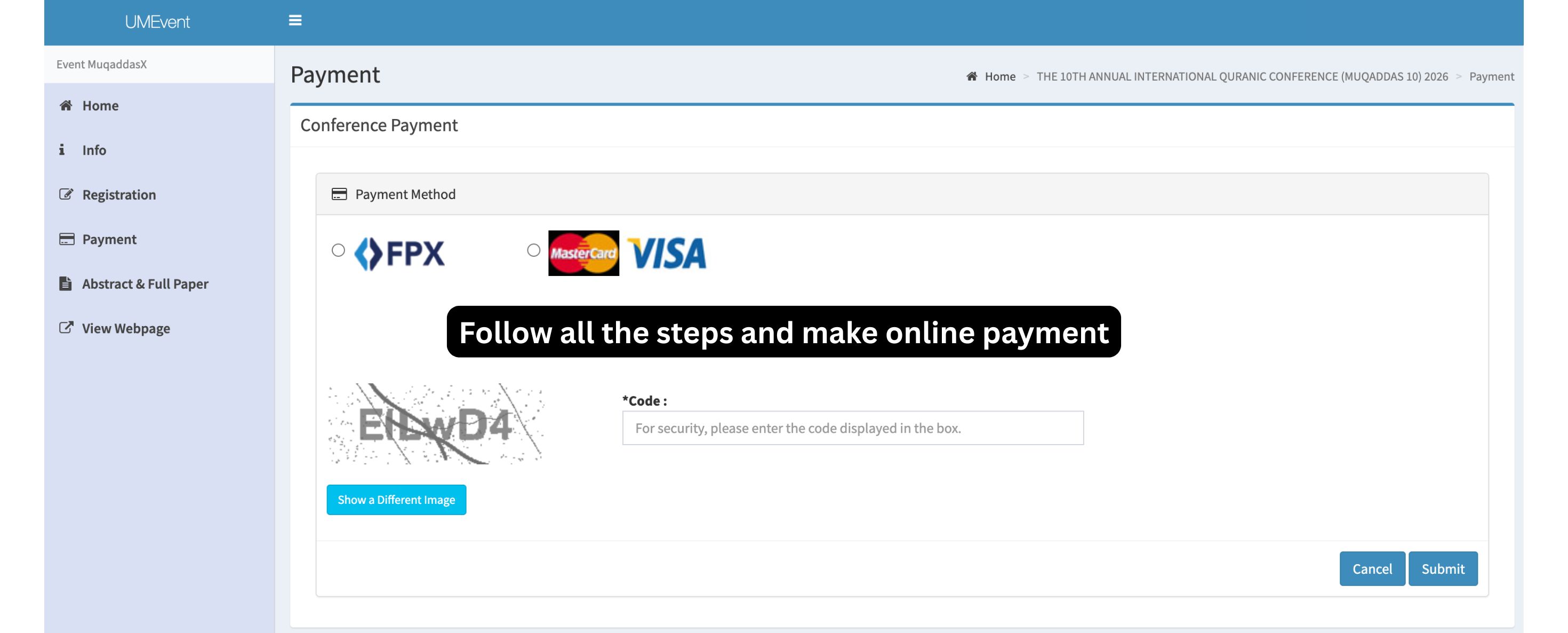 7. Follow all the steps and make online payment and send proof of payment to muqaddasconference2026@gmail.com (Please state the Paper ID in the subject).
