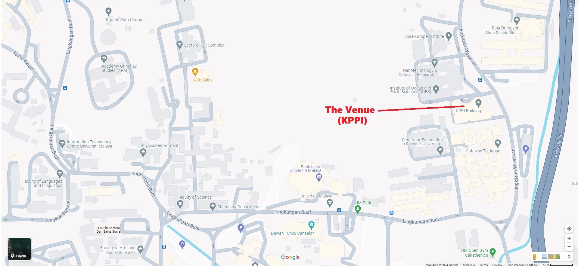 The seminar venue is at Research Management & Innovation Complex (KPPI) for Conference (11 Sept. 2024) and Faculty of Computer Science & Information Technology (FSKTM) for Masterclass (12 Sept. 2024), Universiti Malaya, 50603 Kuala Lumpur, Malaysia. It can be reached easily via public transportation.